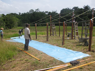 De scholieren helpen mee met de bouw van de tweede kas.